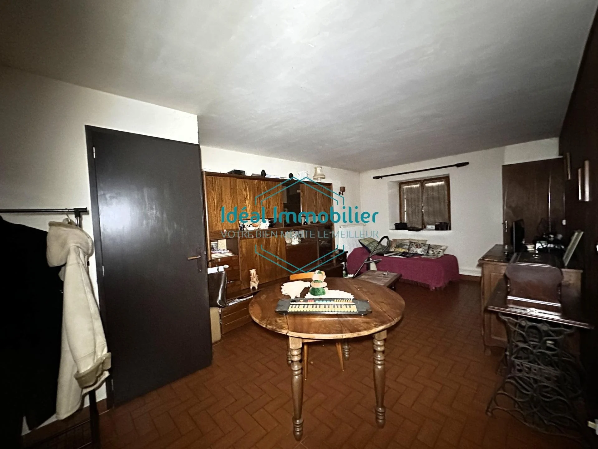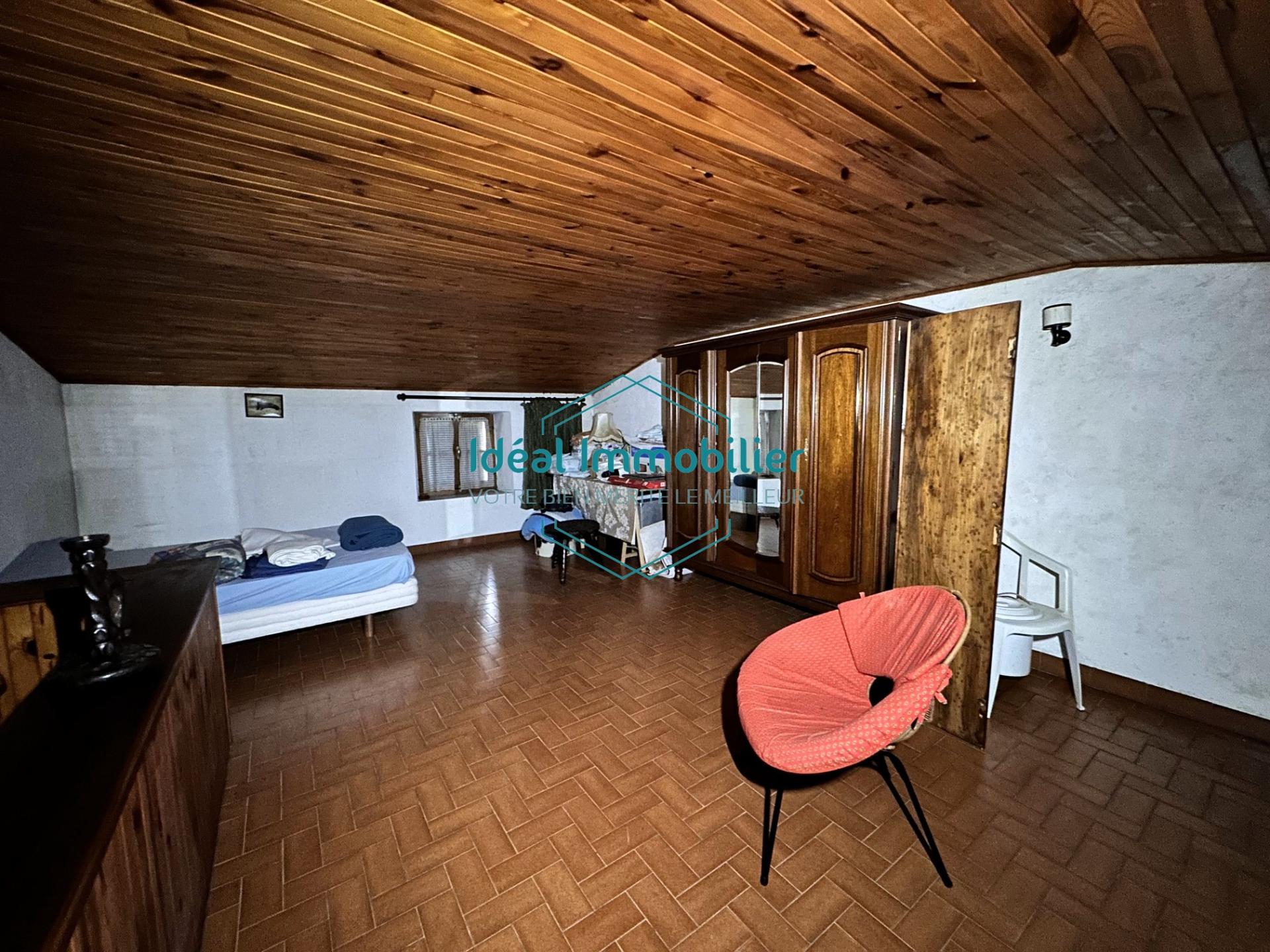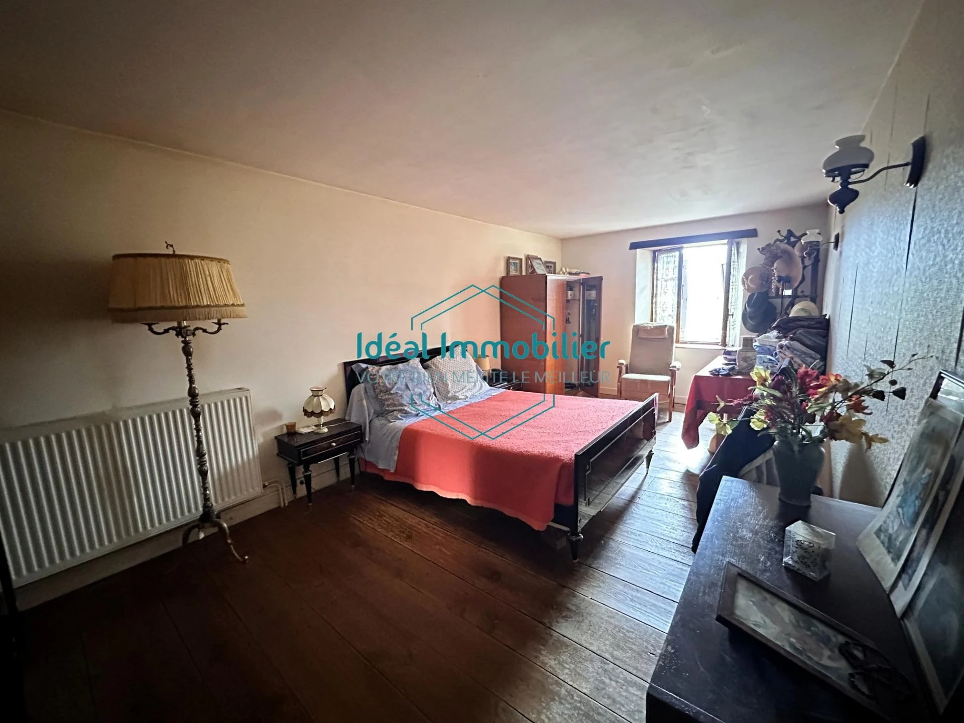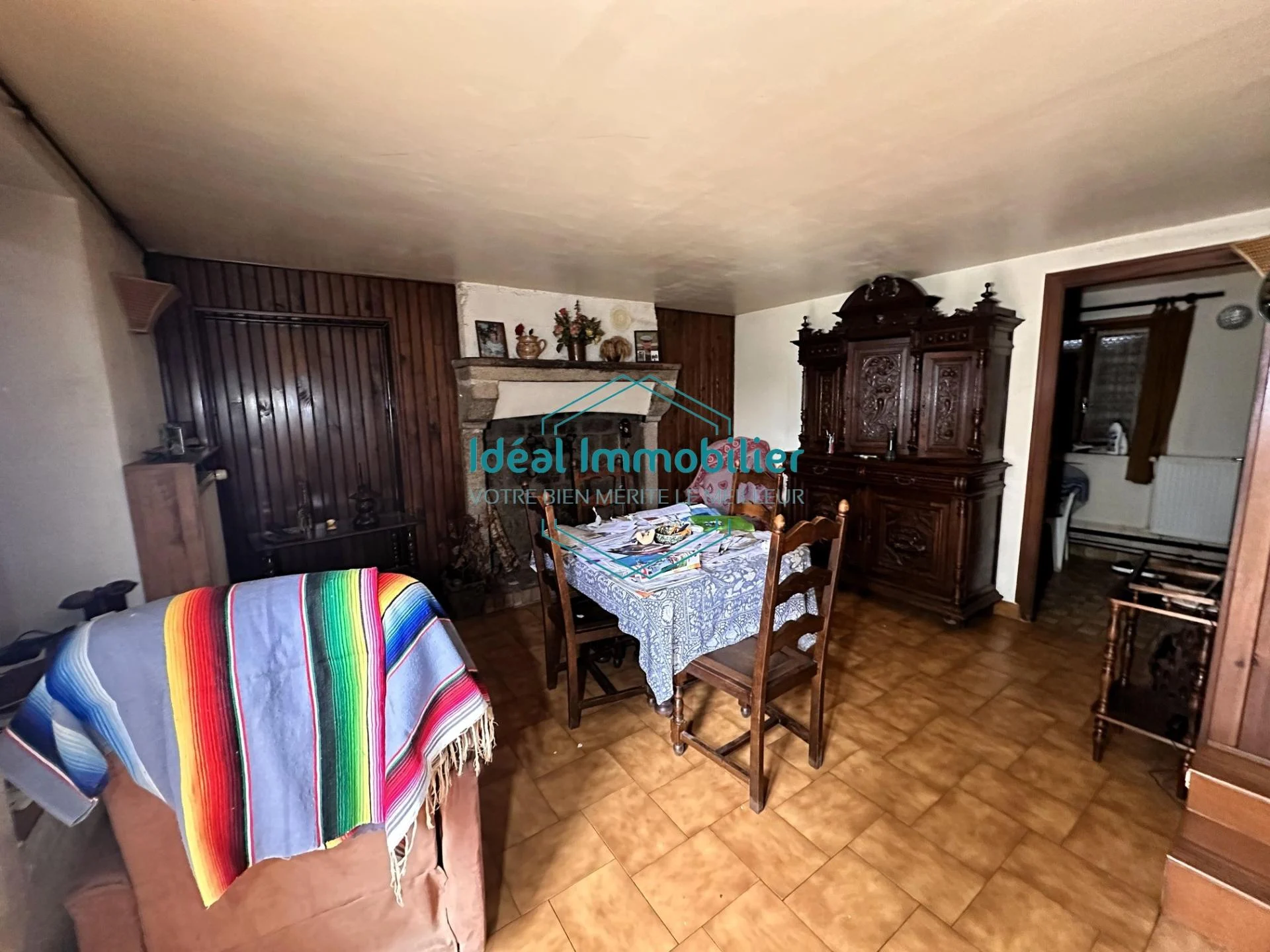 La maison se compose d’un séjour lumineux agrémenté d’une cheminée, d’une salle d’eau fonctionnelle, de deux WC et d’une cuisine avec souillarde nécessitant des travaux de rénovation. À l’étage, deux grandes chambres offrent de beaux volumes, dont l’une donne accès aux combles aménagés qui accueillent une troisième chambre sous pente.